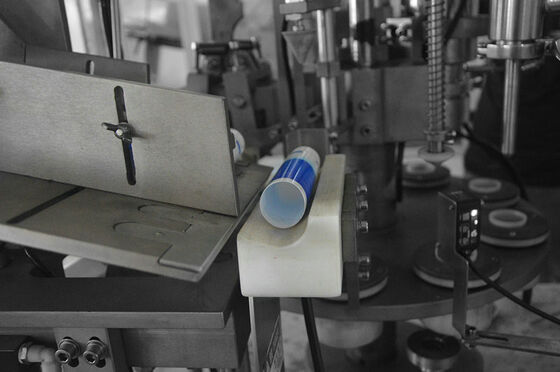 2. La alimentación de tubo, ojo que marca, limpieza interior del tubo (opcional), relleno del material, sellando (plegamiento de la cola), impresión del número de lote, descarga de los productos finales puede ser realizada automáticamente (el procedimiento entero).