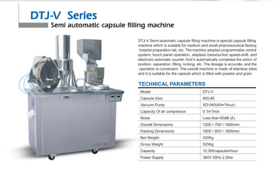 La máquina de rellenar de la cápsula semiautomática de DTJ-V el producto es la máquina de rellenar de la cápsula especial que es conveniente para la fábrica, el laboratorio de la preparación del hospital, el etc. farmacéuticos medios y pequeños. La máquina adoptó el sistema de control programable, la operación del panel táctil, el velocidad-cambio stepless de la transducción, y el contador automático electrónico. Y termina automáticamente la acción de la posición, de la separación, del relleno, de la fijación, del etc. La dosificación es exacta, y la operación es conveniente. La máquina total se hace del acero inoxidable, y es conveniente para la cápsula que se llena del polvo y del grano.