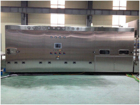 Cuando se lava la botella, consiga en el uniforme del horno y lentamente a través de la red de la transmisión. Las botellas fueron seguidas por la sección del precalientamiento, de la esterilización da alta temperatura y del enfriamiento. La fan mojada en la sección del precalientamiento bombeará el vapor de agua de la botella. Esterilización da alta temperatura para las botellas cerca de 5 minutos en el ambiente de 300--320℃. La sección de enfriamiento está enfriando la botella después de la esterilización. Finalmente puede cumplir los requisitos de proceso y el proceso entero de sequía y de la esterilización es controlado por la operación de supervisión en tiempo real.